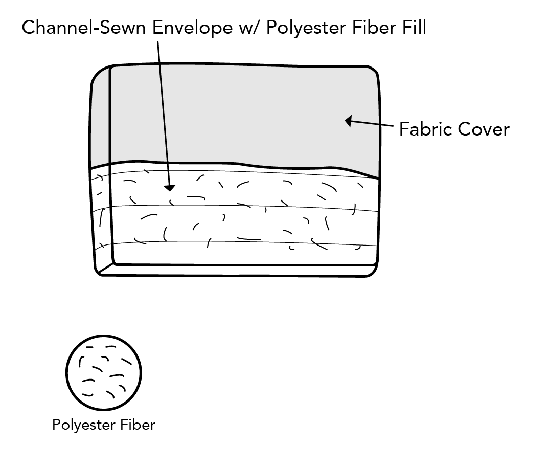 Polyester Fiber fill is offered standard on all back pillows. The filling is encased in a channeled cover to minimize shifting or sagging. This feature offers more support than the softer premium options listed. All back pillows require regular fluffing and rotating to maintain their shape.